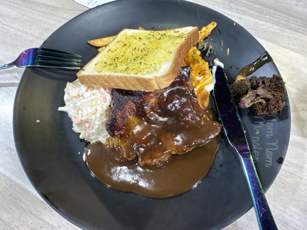 Monday dinner $9.90 Grilled chicken chop with coleslaw and cheese fries